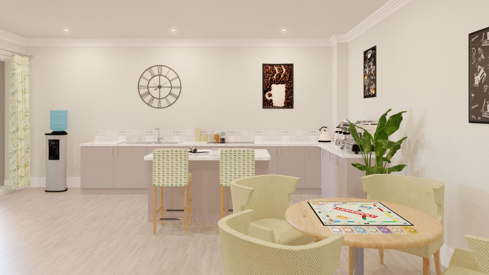 At the heart of the home, is a communal hub and large accessible garden. People also have access to a therapy treatment room and beauty salon.